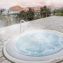 - hydromassage en extérieur chauffé avec vue sur la baie